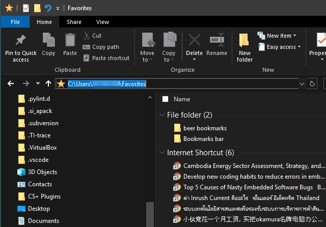 ทีนี้ IE ก็จะนำเอาไฟล์ Bookmark ของเราเอาไปแปลงเป็นไฟล์ Bookmark ของแต่ละเว็บไซต์เป็นไฟล์แล้ว โดยให้เราเข้าไปดูที่ C:\Users\xxx\Favorites โดย xxx เป็นชื่อ User ของเรา