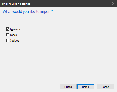 เลือกไฟล์ Favorites แล้วกด Next แล้วก็กด Finish