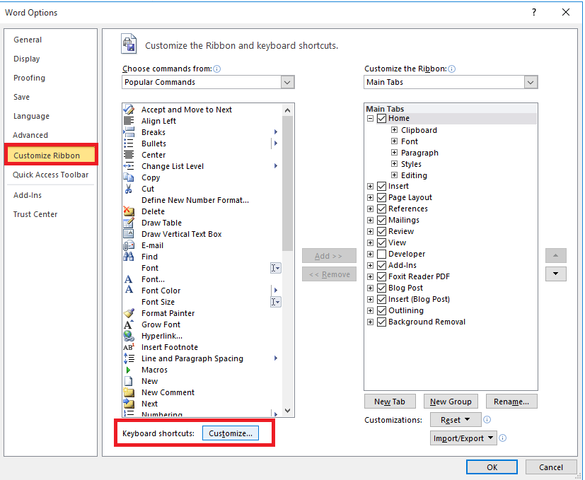 แล้วไปที่ Customize Ribbon แล้วก็เลือก Customize
