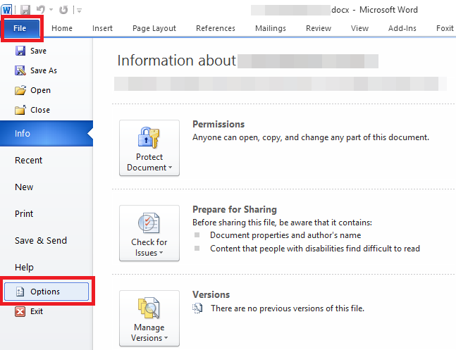 ก่อนอื่นให้ไปที่ File แล้วเลือก Options