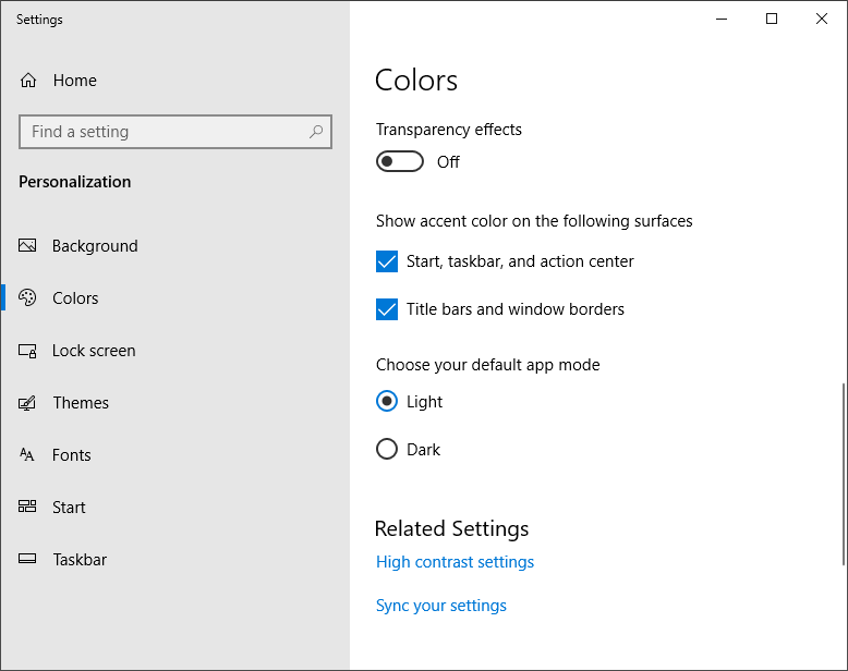 เสร็จแล้วให้เลือกไปที่ Colors แล้วเลือก Choose your default app mode เป็น Dark ดังรูป