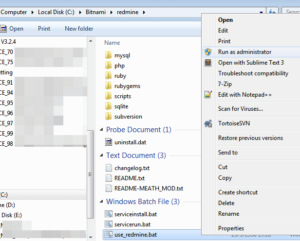 1. เข้าไปที่ C:\Bitnami\redmine แล้วทำการรัน ไฟล์ use_redmine.bat (Run as administrator)