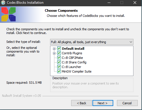 หลังจากโหลดมาแล้วก็ตอนที่ติดตั้งให้ เลือกติ๊กถูกที่ MinGW Complier Suite ด้วย