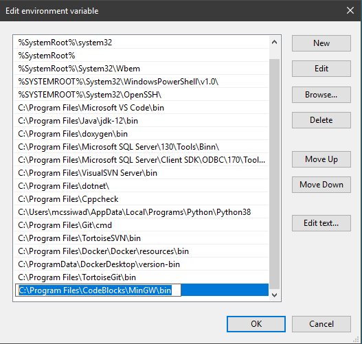 กดไปที่ New แล้วใส่ Path ของ Complier ลงไป โดยปกติจะเป็น C:\Program Files\CodeBlocks\MinGW\bin