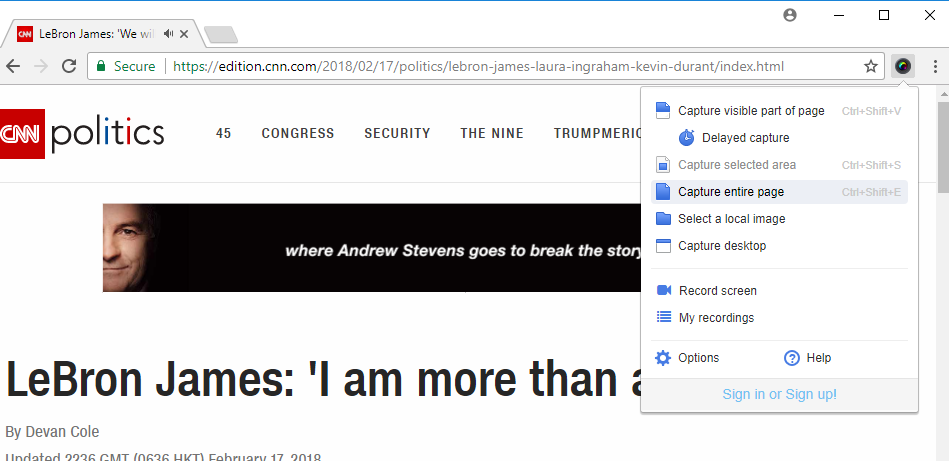 วิธีทำก็คือ ให้เปิดหน้าเว็บที่เราต้องการจะบันทึกภาพไว้ แล้วไปที่ URL ด้านมุมขวาจะมีสัญลักษณ์เป็นจุดๆ ดังรูป ให้เราทำการคลิกเข้าไปแล้วเลือก Take a screenshot