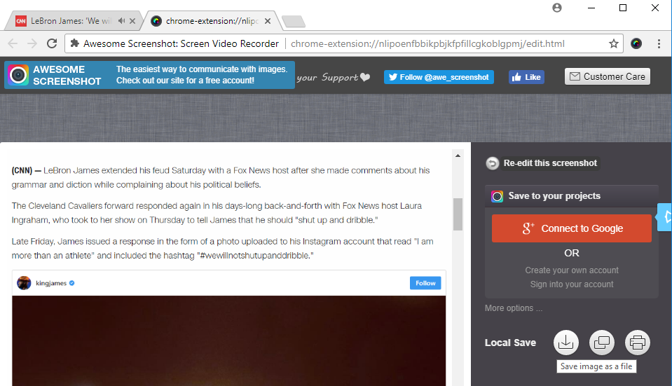 Firefox จะมีให้เราเลือกที่มุมขวามือบนว่าจะบันทึกทั้งหมดของหน้านั้นไหมหรือจะบันทึกแค่เฉพาะที่เห็น หรือว่าเราจะลากป็นกรอบสี่เหลี่ยมเฉพาะตรงที่เราสนใจก็ได้